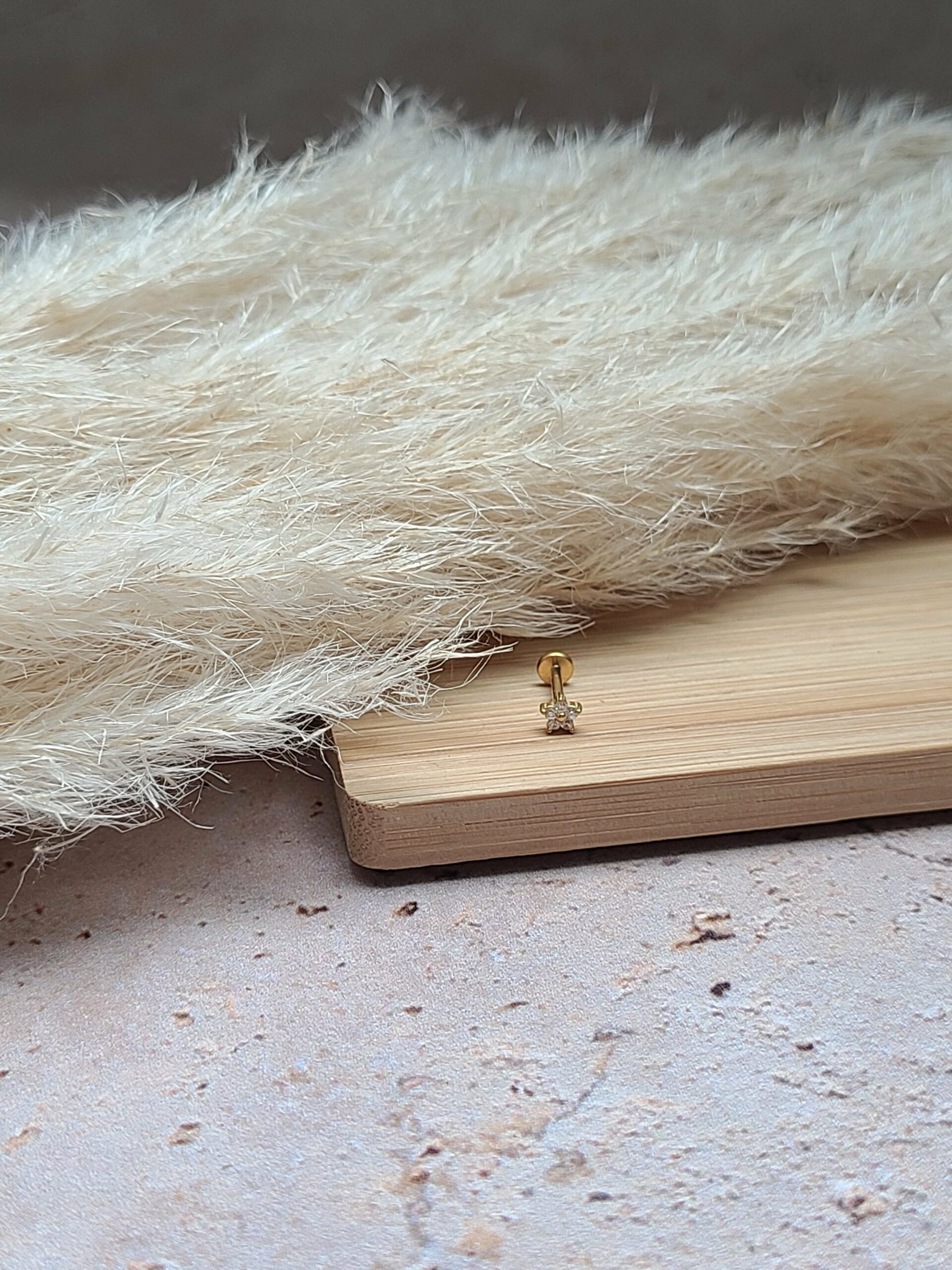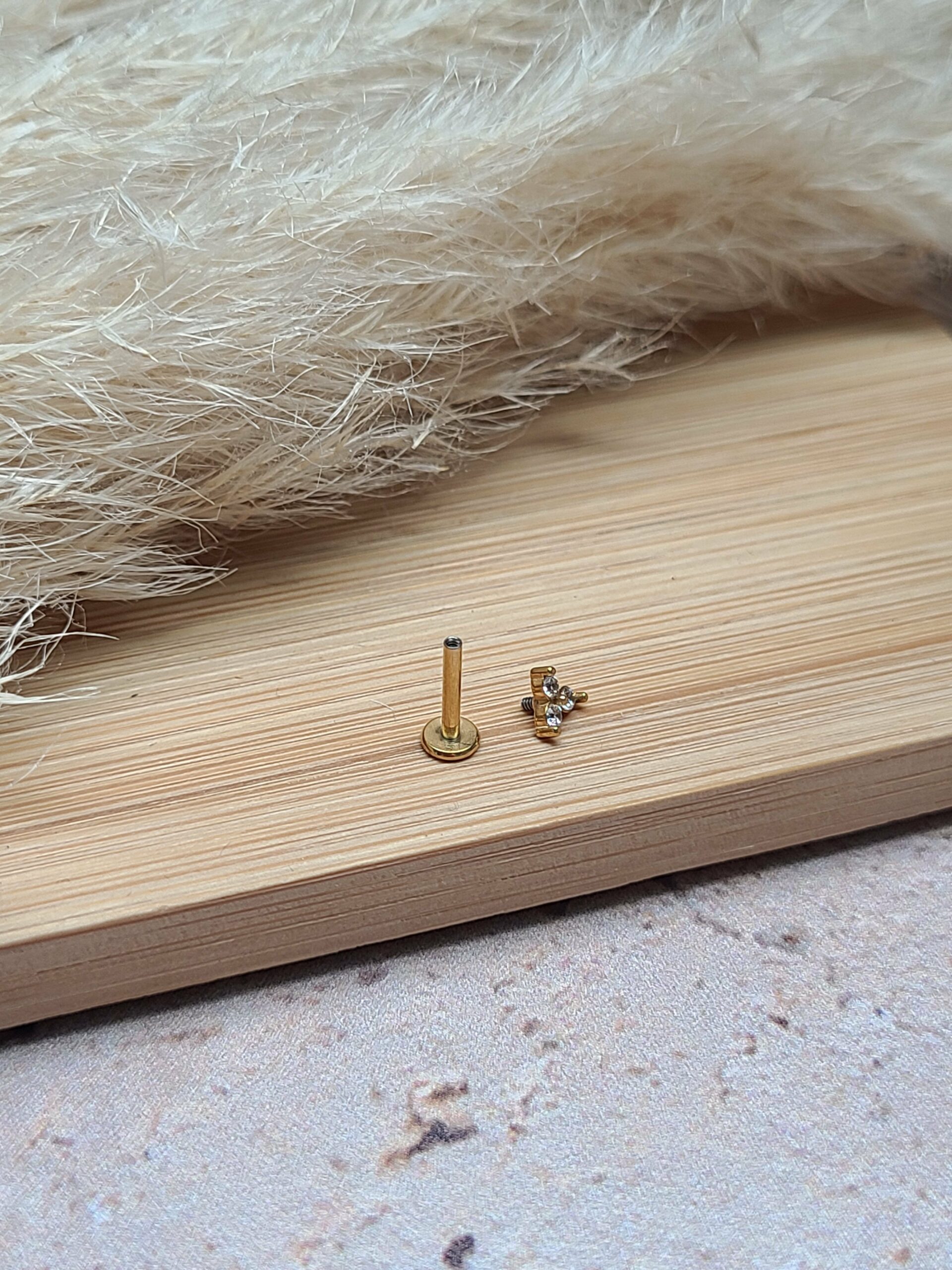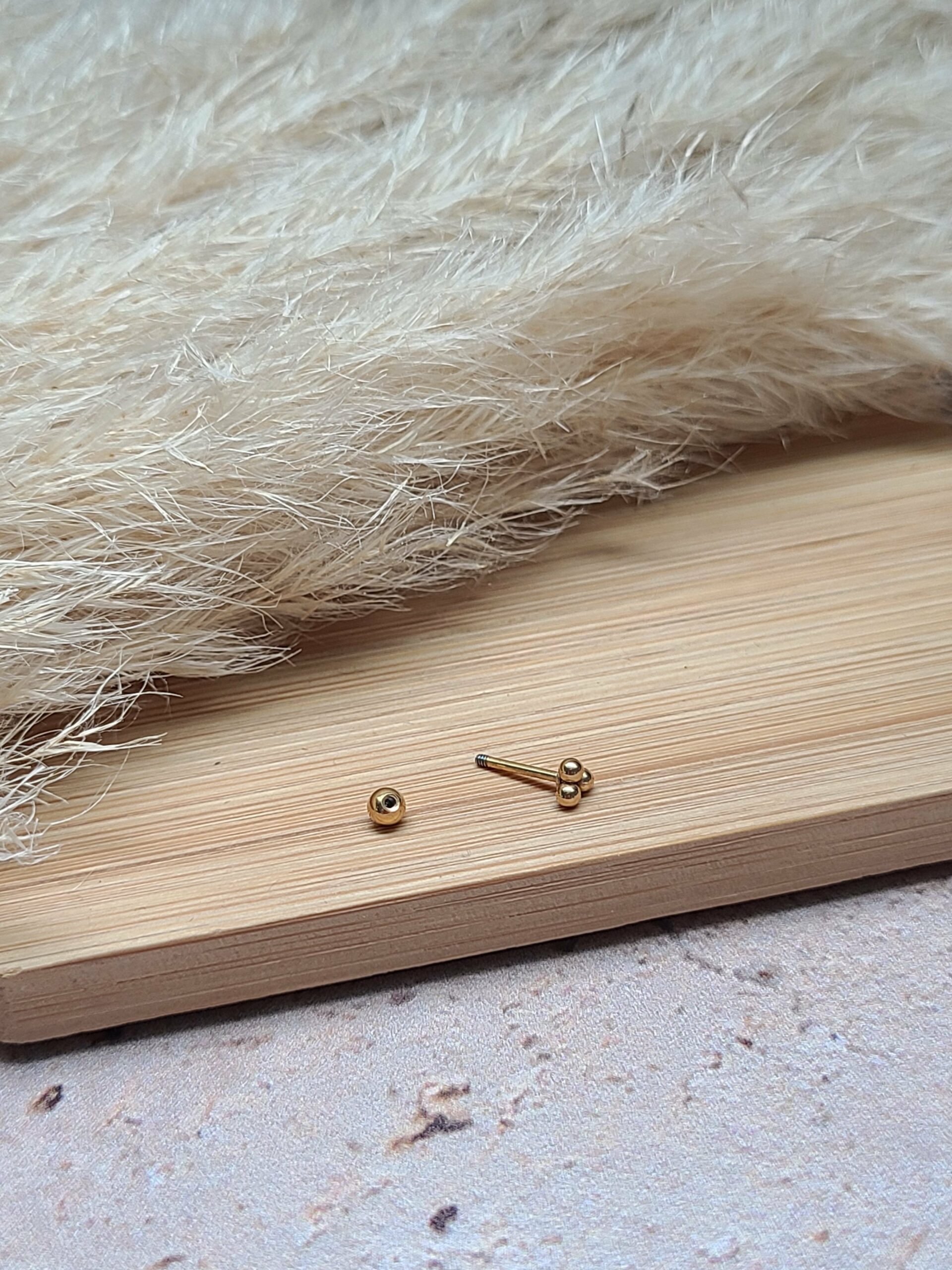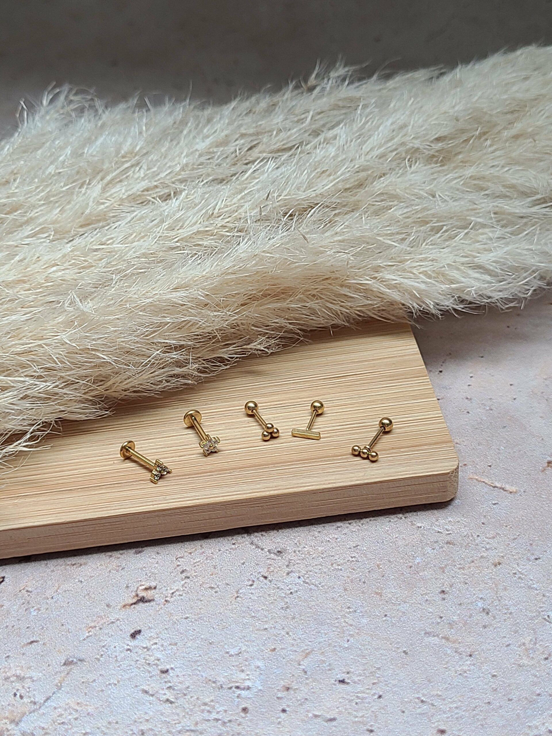 Ils sont différents des boucles classiques par leur fermoir. Celui ci se visse, soit derrière par une finition boule, soit devant, et sa finition est plate.